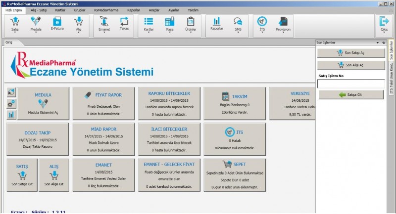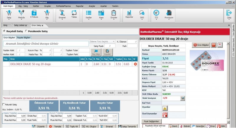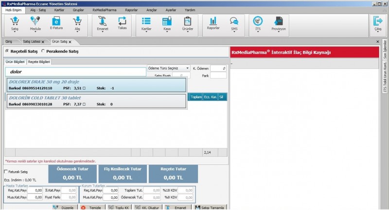 RxMediaPharma® Eczane İşletme Yazılımı Eczanenin alış, satış, stok kontrolu gibi işlemlerinin mevzuata uygun, etkin ve kolay yapılmasını sağlar.
